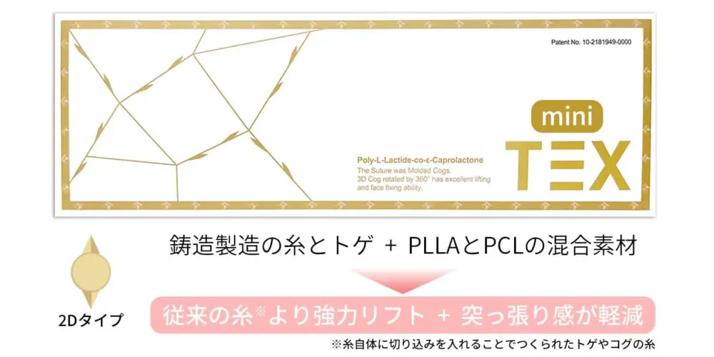 従来の硬い糸とは違い、柔かく柔軟性のある特殊な混合スレッドで引きつれが起こりにくく自然な引き上げが可能です。